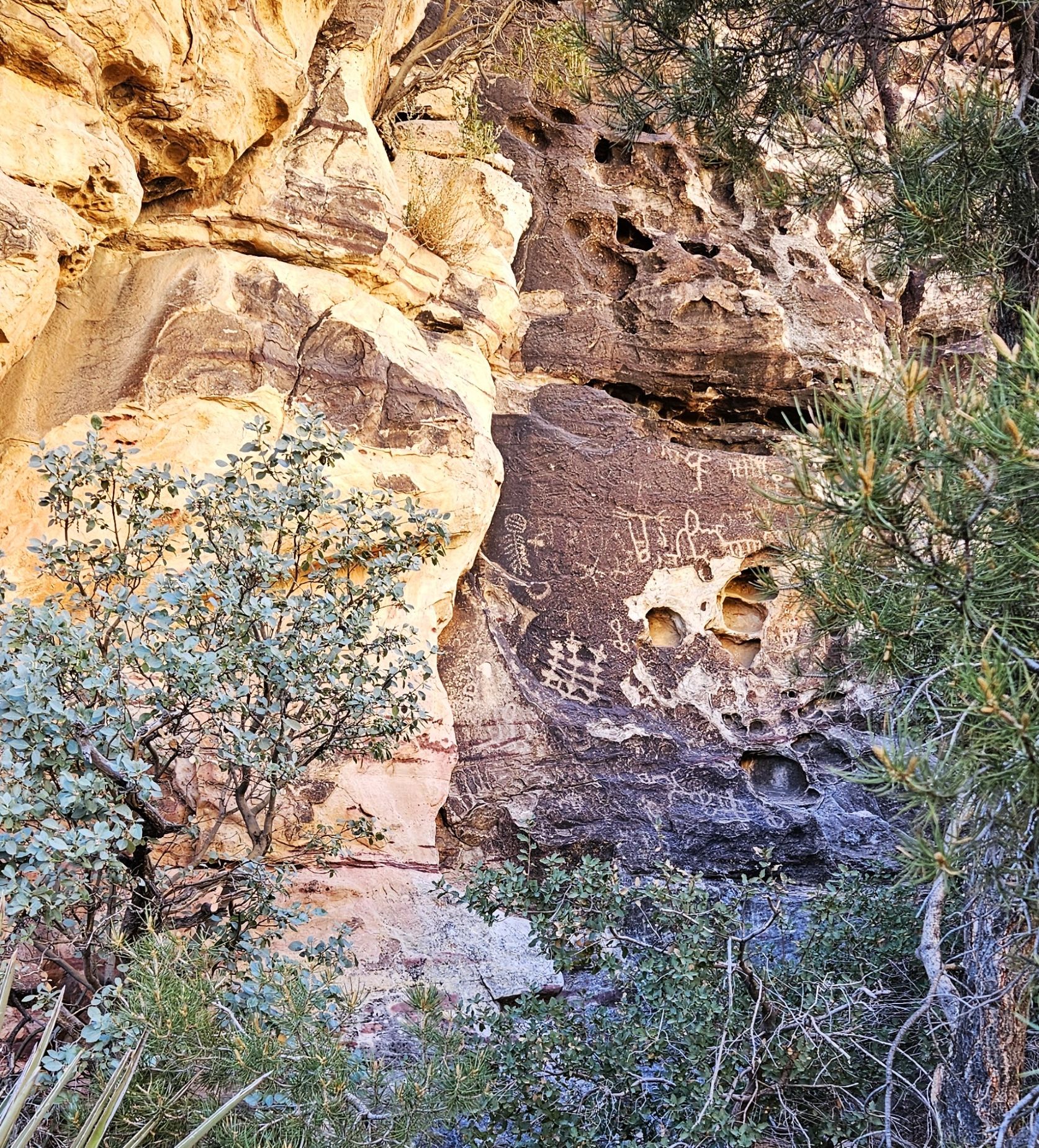 We stopped for lunch at a picnic area. Nearby was a wall with Indian petroglyphs. After lunch, I took a little hike down this trail to see the ancient Indian artwork.