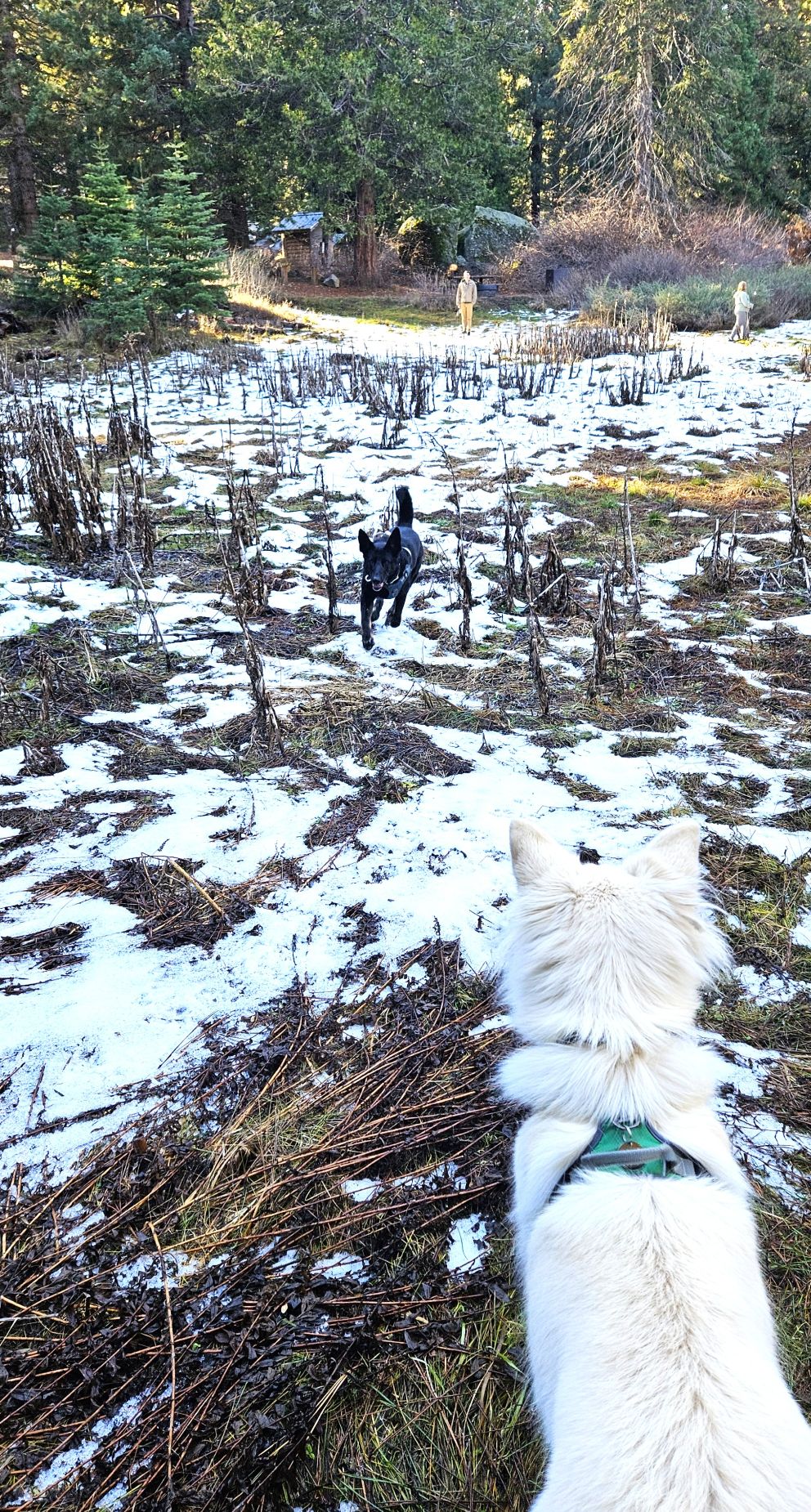 It was a cold and cloudy day. We walked to a nearby campground that was closed for the season hoping to find some snow where the grandkids and dogs could play.